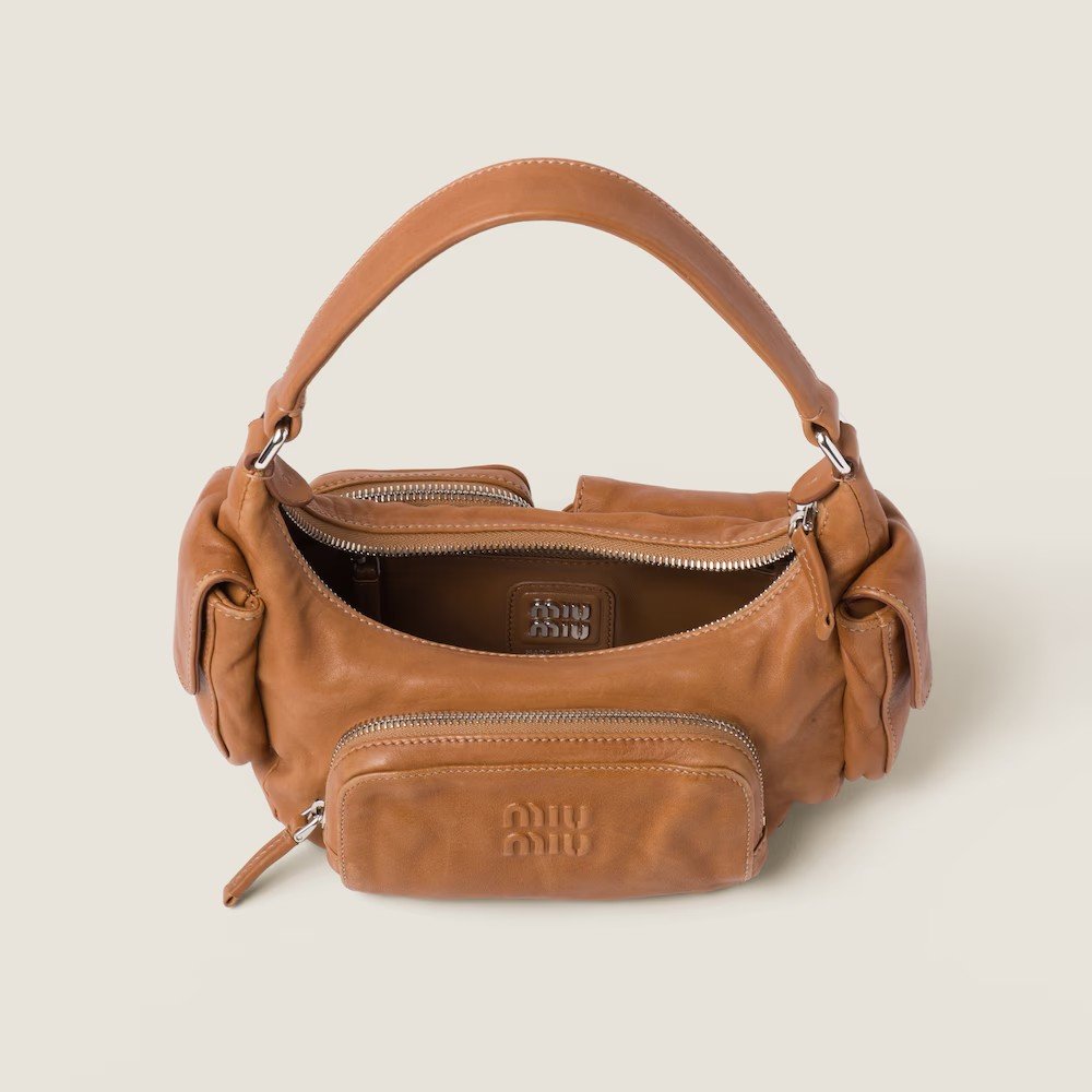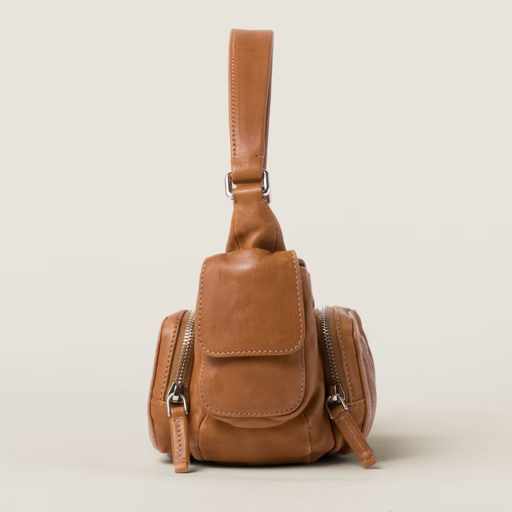Soft Lamb Nappa Pocket Handbag Coffee Brown