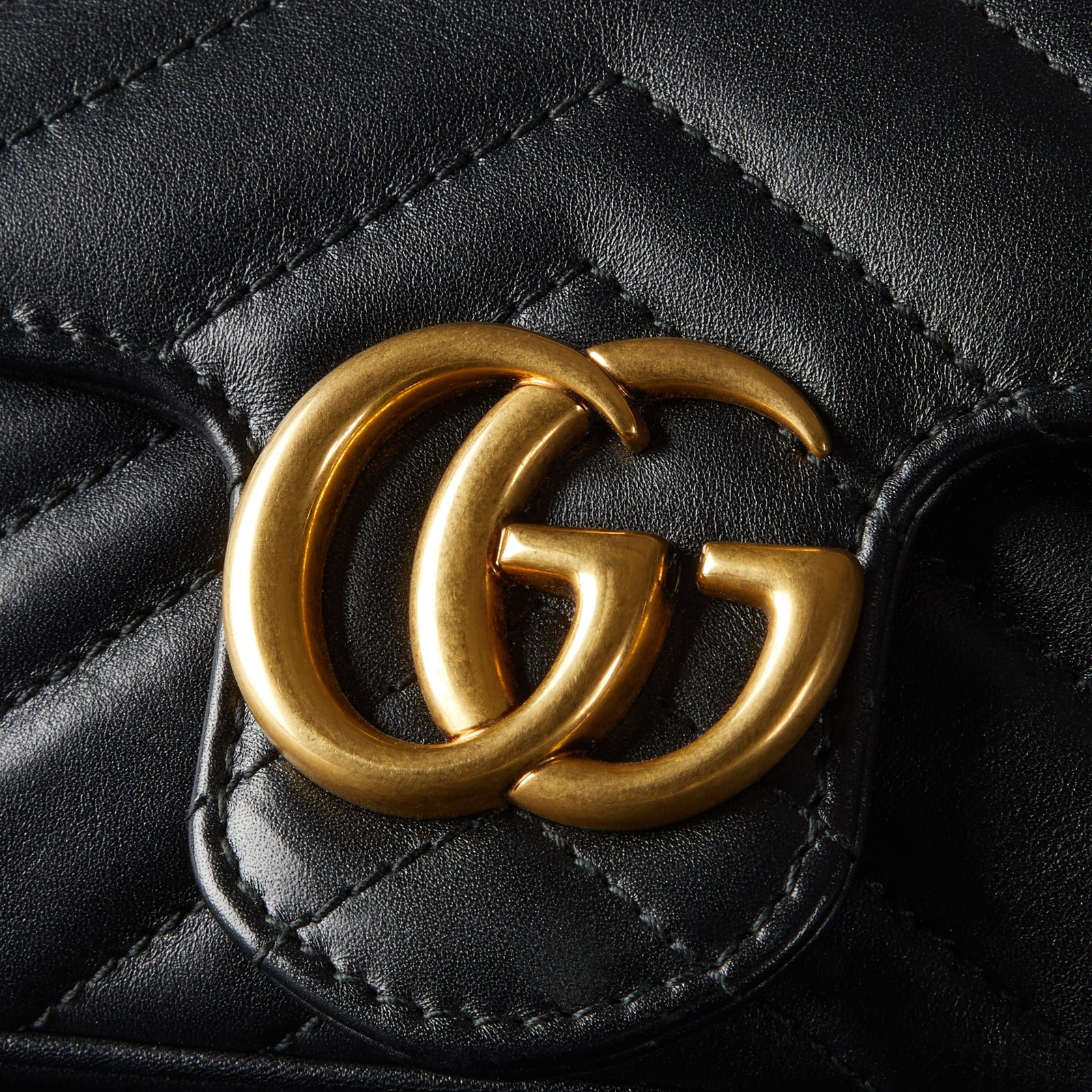 Ce mini sac GG Marmont avec chaîne est doté d’un porte-clés permettant de l’attacher à un sac plus grand. Il possède une