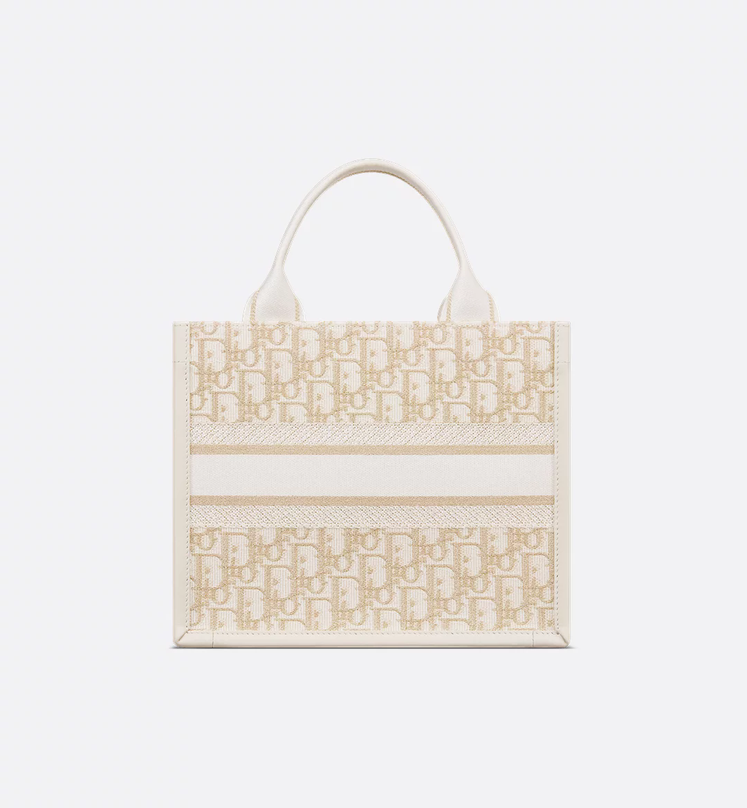 Dior Oblique Embroidery with Gold-Tone Metallic Thread and Latte Calfskin (26.5 x 22 x 14 cm)