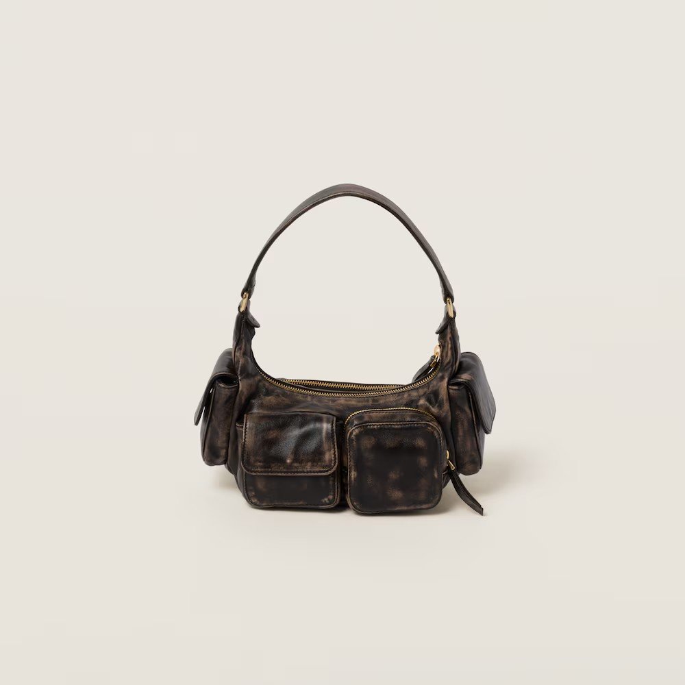 Soft Lamb Nappa Pocket Handbag Coffee Brown