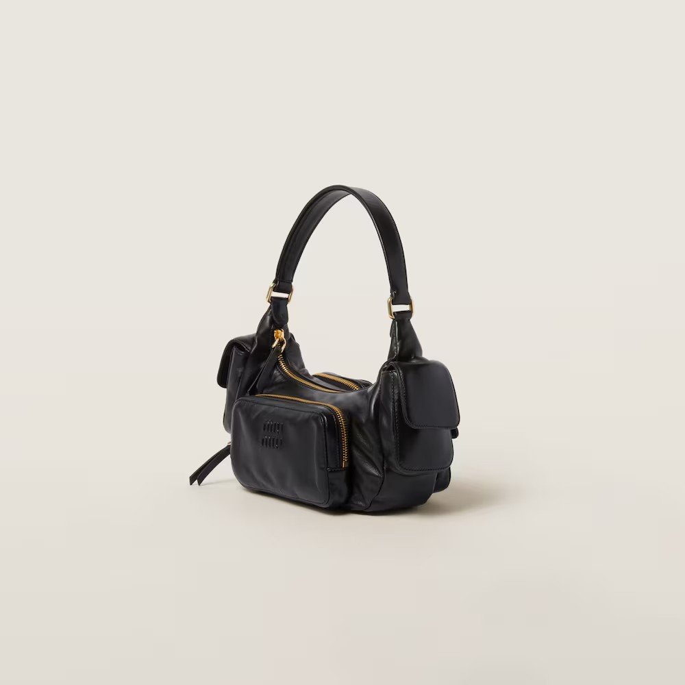Soft Lamb Nappa Pocket Handbag Coffee Brown